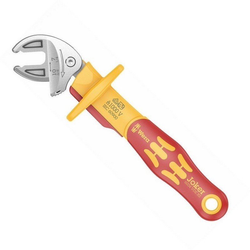 Wera 6004 Joker VDE Cırcırlı Kurbağacık XS 05020150001 setindeki ayarlanabilir anahtarlar; mümkün olan en geniş uygulama yelpazesine sahip evrensel bir vidalama aletini kullanıcılara sunmaktadır. 7mm-10mm ağız genişliğine sahip Wera 6004 Joker VDE Cırcırlı Kurbağacık XS 05020150001 setindeki ayarlanabilir anahtarlar farklı vida boyutlarına otomatik olarak uyum sağlamaktadır. Wera 6004 Joker VDE ayarlanabilir anahtarlar altıgen cıvataya veya vidaya takarken gerekli boyut otomatik ve sürekli olarak ayarlanır. Entegre kol mekanizması, altıgen vidayı veya cıvatayı çeneler arasında güvenli bir şekilde sıkıştırarak kayma veya hasar riskini önemli ölçüde azaltır. Kola entegre cırcır özelliği, aleti çıkarmadan hızlı ve tutarlı vidalama sağlar. Wera 6004 Joker VDE Cırcırlı Kurbağacık XS 05020150001 setindeki ayarlanabilir anahtarlar ile 30°'lik bir dönüş açısı elde edilebilmektedir. Tek kollu tasarım, cırcır özelliği ve köşe genişliği prizması ile birlikte dar alanlarda bile çalışmayı mümkün kılar. Kendinden ayarlı ve kavramalı ayarlanabilir Joker VDE 6004 evrensel vidalama aletidir.