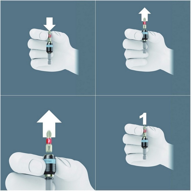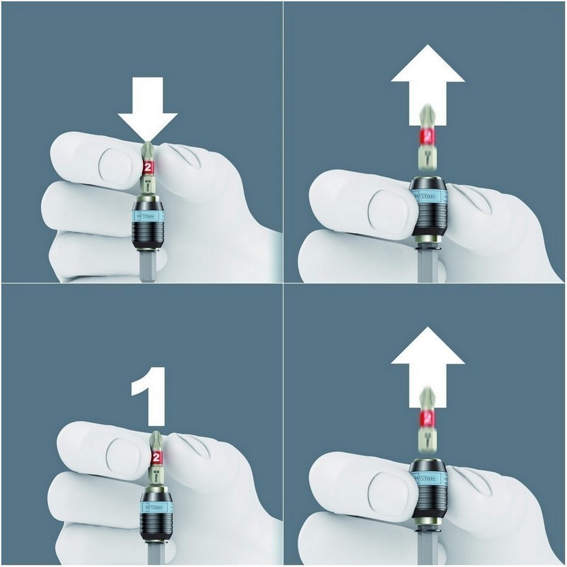 DIN ISO 1173-C 6.3 ve E 6.3 standardındaki ¼" erkek altıgen bağlantılı bitsleri tutmak için üniversal bits tutucu. Paslanmayı önlemek için paslanmaz çelik tasarım. Rapidaptor teknolojisi, bitslerin mandren manşonunu hareket ettirmeden takılmasını sağlar. Diğer yandan, bits, sadece bits tutucunun ucundaki mandren manşonunun ileri doğru itilmesiyle tek elle kolay ve hızlı bir şeklide çıkarılır. DIN ISO 1173-F 6.3 standardındaki ¼" altıgen bits tutuculu şarjlı tornavidalar için uygundur.