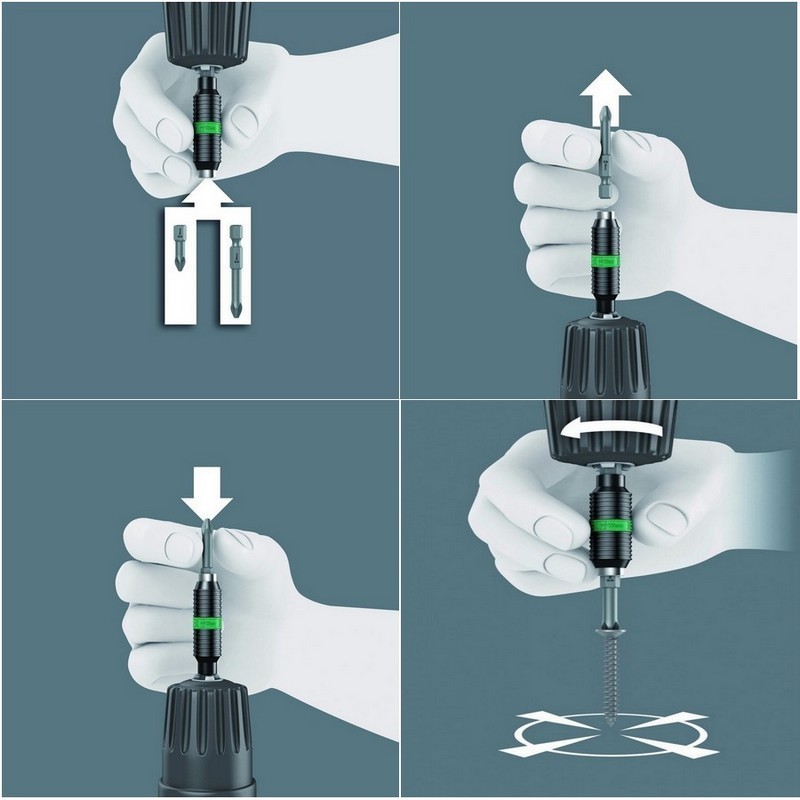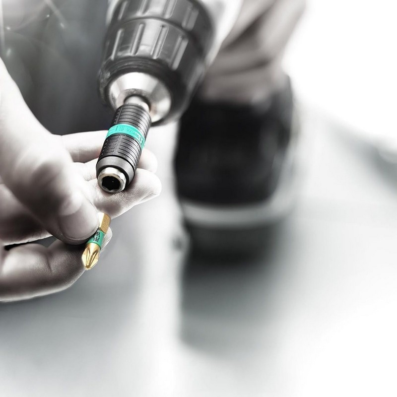 Wera Impaktor tutucu darbe tepe noktalarının emilimini sağlar. Çift burulma yayı sayesinde özel burulma etkisi. Ağzı içindeki tutma halkası, aletin tutucuya optimum şekilde oturmasını sağlar. Mıknatıs, bits ve vidanın daha iyi sabitlenmesini sağlar. Tutma halkalı ve mıknatıslı Impaktor paslanmaz tutucu endüstriyel montaj uygulamaları için kullanılır.