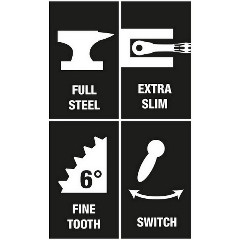 Wera 8001A Zyklop Mini Cırcır 1/4" Sürücü 05073230001 bir cırcırdan beklenen tüm fonksiyonları yerine getir. Normal cırcırlardan tek farkı boyutu. 6 derecelik çalışma açısına sahip olan Wera 8001A Zyklop Mini Cırcır 1/4" Sürücü 05073230001, 1/4 inç sürücüye sahiptir. Çalışılması zor ve dar alanlarda Wera Zyklop mini cırcır büyük kolaylık sağlamaktadır. 65 Nm gücü dayanıklı metal yapısı olan Wera 8001A Zyklop Mini Cırcır 1/4" Sürücü 05073230001 mandallı yön mekanizmasına sahiptir. Mandallı yön mekanizması sayesinde cırcırı sağ veya sol yönde kullanmak mümkündür. Zyklop Mini Cırcır'ın 1/4 inç sürücüsü sayesinde tüm 1/4" kare soket lokmalar ile uyumlu olup, lokmaları takıp çıkarmak oldukça kolaydır. Metalden yapılmış olan sapı el ergonomisine göre tasarlandığından rahat bir tutuşu vardır.