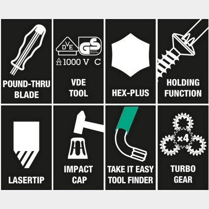 - Dört kat daha hızlı vidalama hızı için Wera Kraftform Kompakt Turbo i 1 (16 parçalı sap/değiştirilebilir bıçaklar VDE seti)