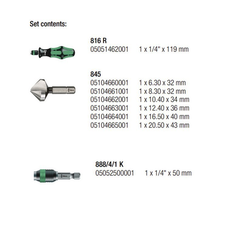 Wera 845/8 Tek Oluklu Havşa Uç Seti İçeriği