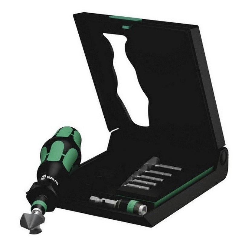 Wera 846/8 Üç Oluklu Havşa Uç Seti 05104650001'nde rapidaptor değişken uçlu tornavida, rapidaptor bits tutucu ve altı adet oluklu havşa uç bulunmaktadır