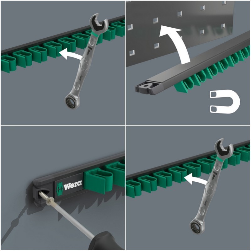 Wera 9631 Manyetik Şeritli Joker 6000 Açık Ağız Cırcırlı Kombine Anahtar Seti 2 5P 05020015001 plastik klipsli mıknatıslı şeritle birlikte gelmektedir. Manyetik şerit metal yüzeylere kolayca tutunur ve çalışmayı pratiklştirr.
