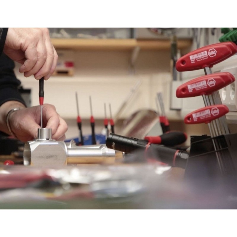 The challenge in precision screw fastenings is to work meticulously and carefully without damaging the work piece. Thanks to their long, slim handles and quick-turning zone, Wiha PicoFinish® fine screwdrivers are ideal for delicate and high-precision tasks in precision mechanics as well as for hobbyists and model building. Its ergonomic handle design with a soft zone makes it comfortable to use. The smooth-running rotating cap allows users to turn the screwdriver quickly and sensitively. The printed screwdriver symbols on the rotating cap make it easier to select the right screwdriver profile.