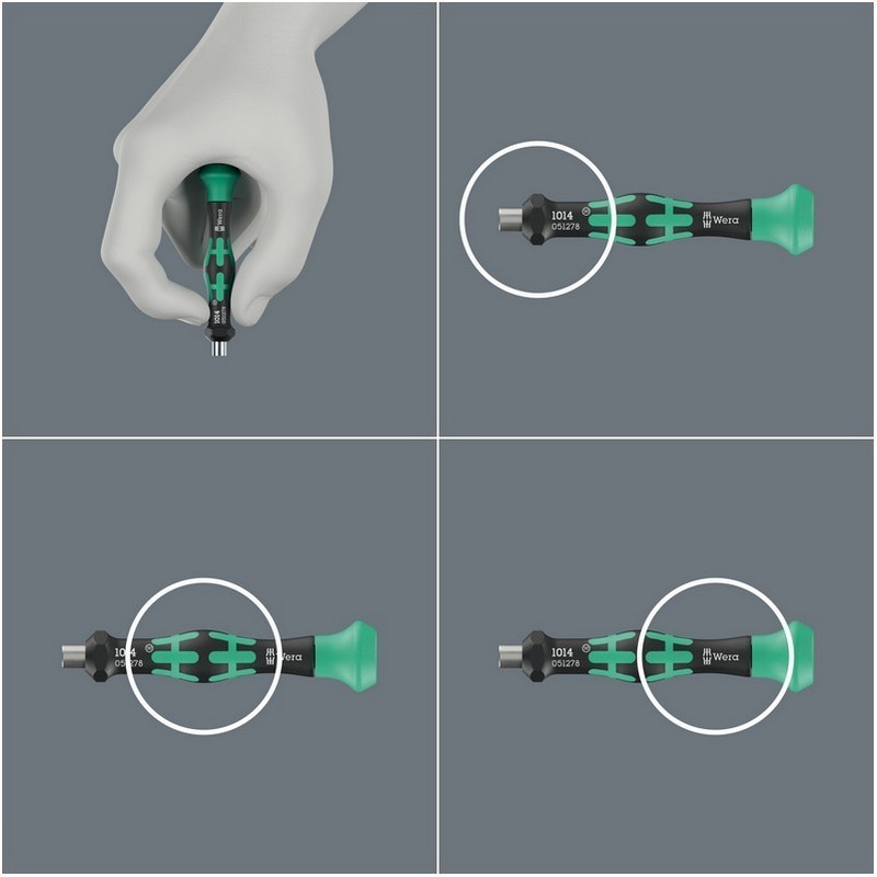 Rahat ve yorulmadan çalışmak için ergonomik saplı Kraftform Micro bits tutuculu tornavida. Üç bölgeli (hassas, güçlü ve hızlı dönen bölgeler) Kraftform Micro sapı ve bunların özel düzenlemesi bu gereksinimleri mükemmel şekilde karşılar. Elinizi dayayabileceğiniz sorunsuz çalışan kapak, bu avantajları ideal bir şekilde destekler. Yuvarlanma önleyici koruma, uçların işyerinde sinir bozucu bir şekilde yuvarlanmasını önler. 4mm bağlantılı bitsler için uygundur.