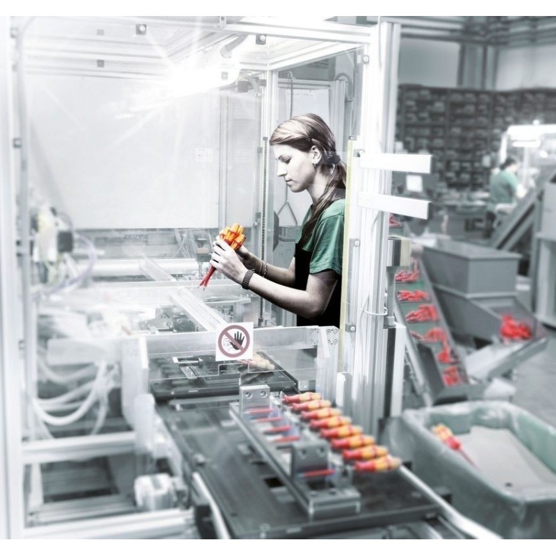Wera 160i VDE izole düz tornavida 05006115001 hızlı ve yorulmadan çalışma için çok bileşenli Kraftform sapa sahiptir. Wera 160i VDE İzole Düz Tornavida elektrikli alanlarda vida sıkmak ve sıkışmış vidaları gevşetmek, için idealdir. Metal uç kısım uzunluğu 8cm olan Wera 160i VDE 05006115001 izole düz tornavida'nın ağız genişliği 4mm ve ağız kalınlığı ise 0,8mm'dir. Kraftform sap: Yüksek çalışma hızları için sert kavrama bölgeleri, yumuşak bölgeler ise yüksek tork aktarımı sağlar. Wera 160i VDE 05006115001 İzole Düz Tornavida'ki altıgen yuvarlanma önleme özelliği, işyerinde can sıkıcı herhangi bir yuvarlanmayı önler. Wera 160i VDE 05006115001 İzole Düz Tornavida üzerindeki renk kodlamaları sayesinde tornavidaları ayırt etmek ve bulmak son derece kolaydır.