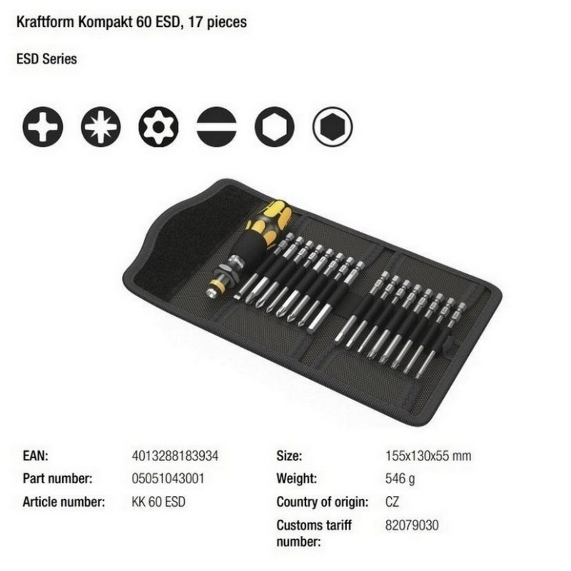 Wera 60 ESD Tornavida Bits Seti KF Kompakt 05051043001