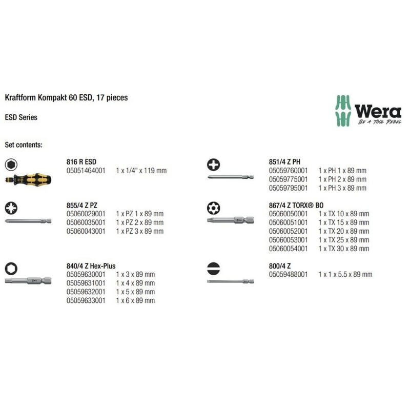 Wera 60 ESD Tornavida Bits Seti KFK 05051043001 İçindekiler