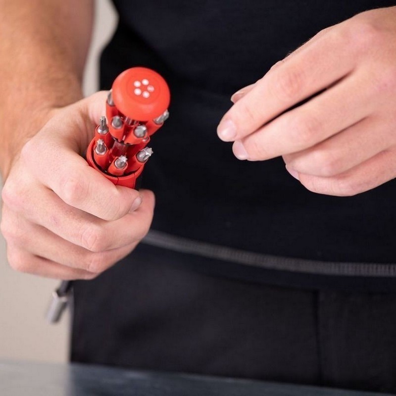 The LiftUp 26one® magazine bit holder has 13 double bits; 12 in the magazine and 1 in the bit holder. Inside the bit holder, there is a two-row bit clip in a compartment design, thus enabling easy removal of the bits. Thanks to its narrow shape, the SuperSlim bit holder even enables access to screws in blind holes, for instance, where other, “thicker” bit holders have long failed.The sophisticated detail solutions offered by the LiftUp are certainly impressive - not to mention versatile. For example, the bit magazine on the handle end pops out at the touch of a button, making the bits simple to remove.The soft zone of the ergonomically shaped SoftFinish® multi-component handle is made of skin-friendly special material. Coupled with its geometry that is easy on the hand and the large volume of the handle, it guarantees top torque values. Powerful screw fastening or loosening thus goes hand in hand.The LiftUp 26one is delivered in high-quality individual packaging.